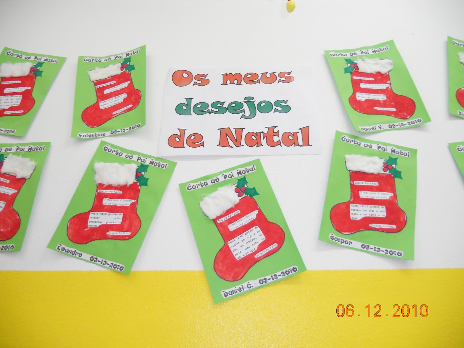 Dentro do saco ainda podíamos encontrar um postal com uma árvore de Natal que os meninos fizeram com o dedo.