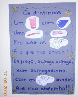 Hoje criamos na nossa sala um espaço onde vamos colocar as principais canções, aquelas que cantamos quase todos os dias por fazerem parte da nossa rotina. A primeira canção que colocamos foi a dos dentinhos...para incentivar os meninos a escovar os dentes.